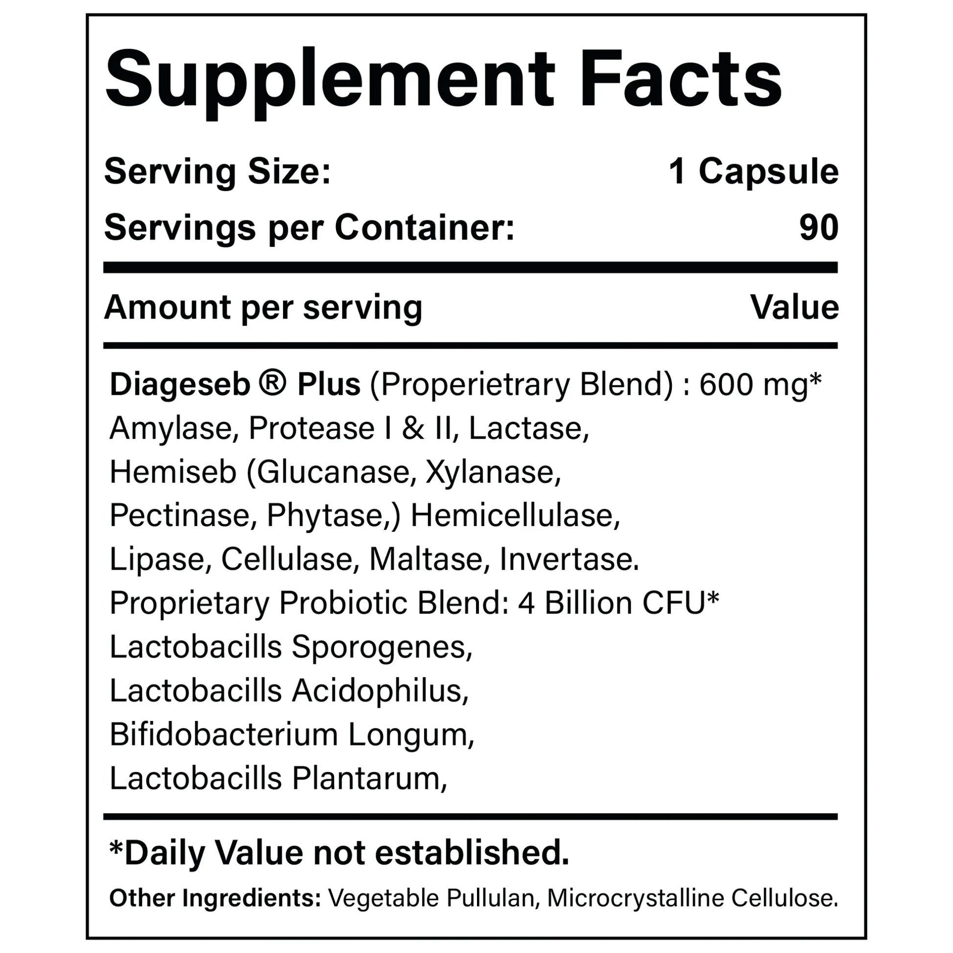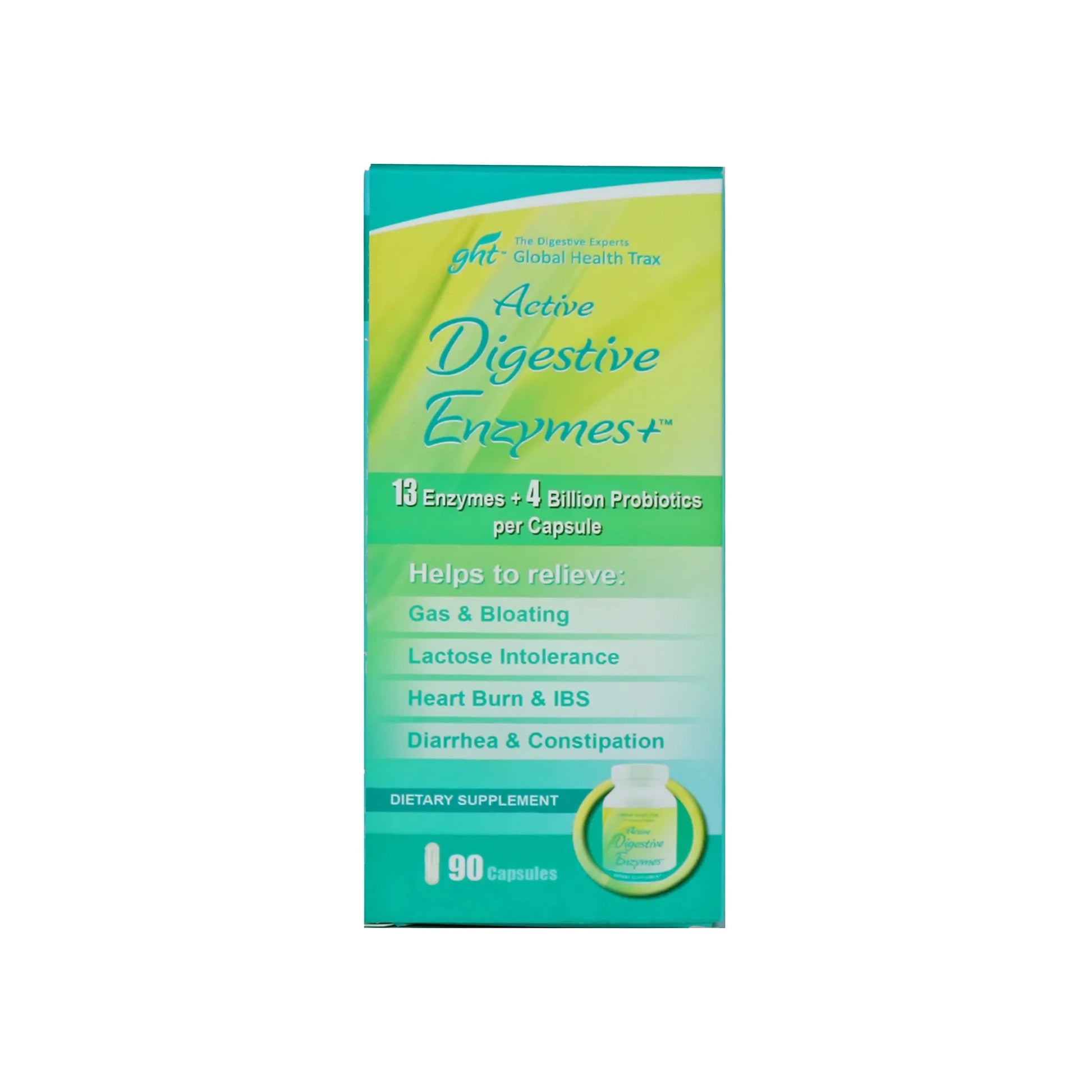 تحتوي حبوب active digestive enzymes على 13 إنزيم مختلف و 4 مليار من البكتيريا النافعة ( البروبيوتك ) وهي مواد يحتاجها الجسم للمساعدة في هضم الطعام و هي تساعدك في تناول و الاستمتاع بمنتجات الألبان و تناول الأطعمة الغنية بالتوابل دون الحاجة إلى تجنب الأطعمة المفضلة لديك أو القلق من المشاكل الهضمية التي تسببها .