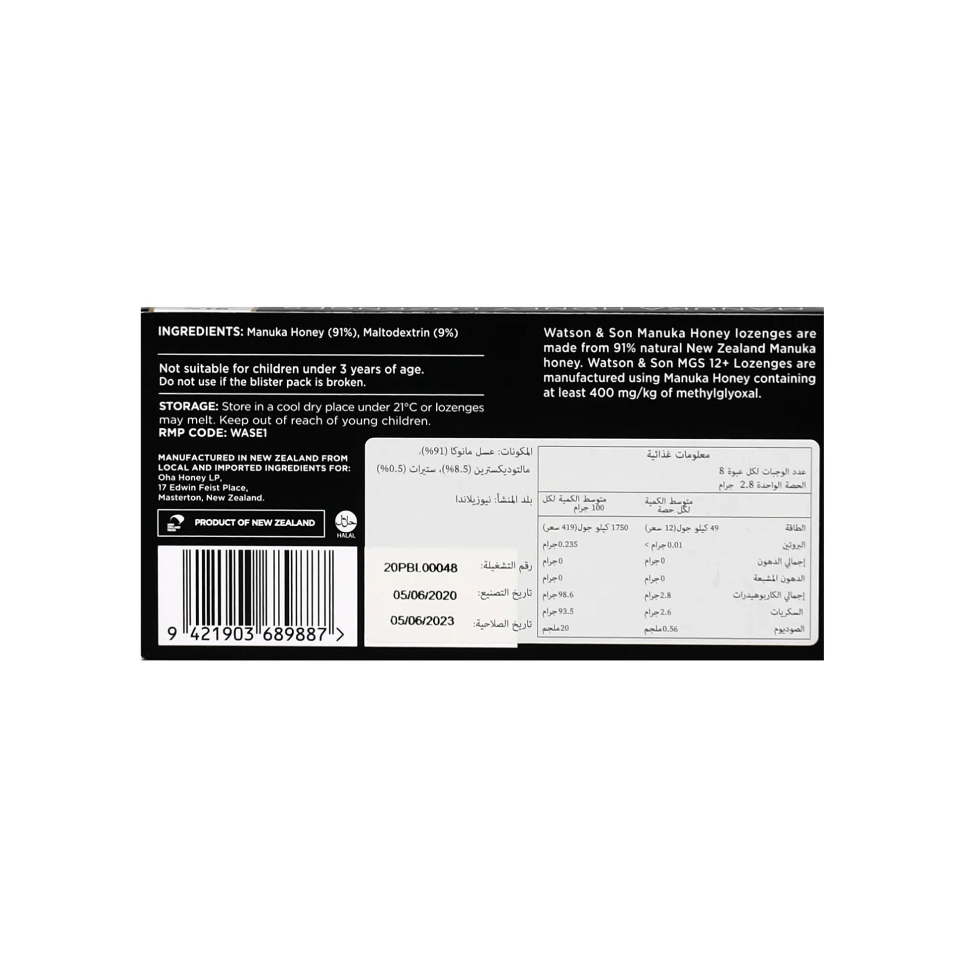 واتسن اند سون أقراص مص من عسل المانوكا 8 أقراص