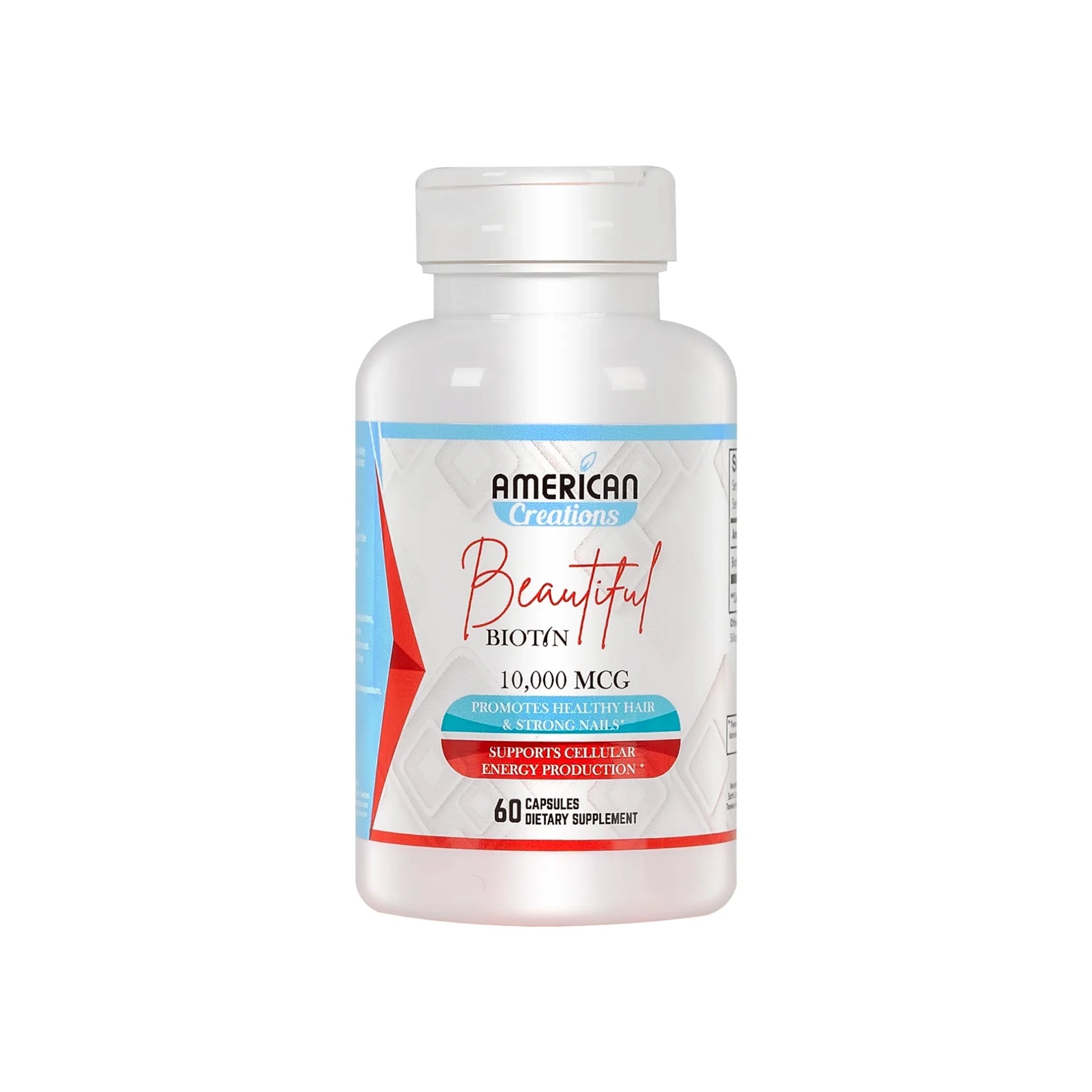 American Creations Beautiful Biotin is a powerful dietary supplement that promotes healthy hair and strong nails.