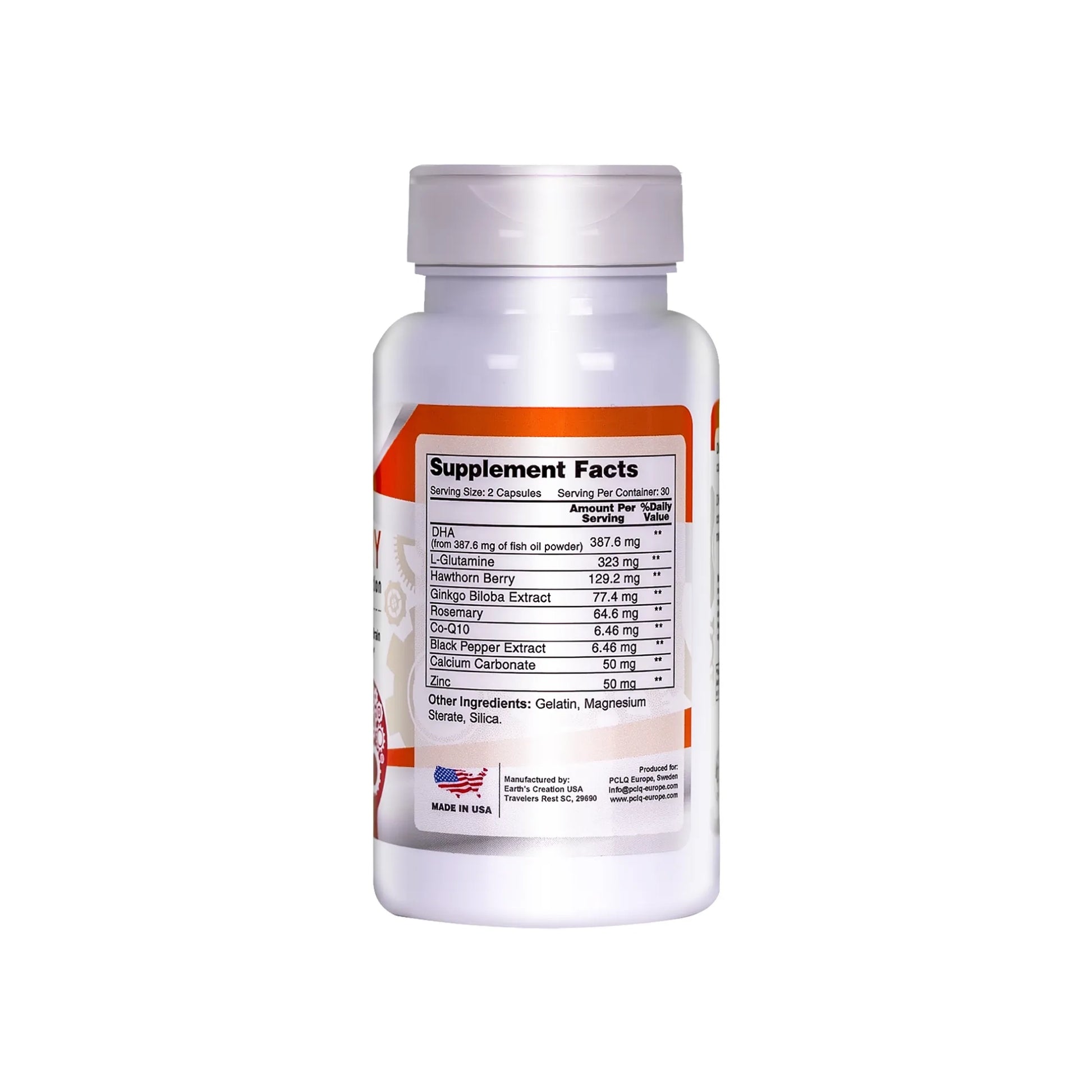 Every capsule is loaded with ingredients known for strengthening memory and bolstering brain health. This unique blend includes Hawthorn Berry, Ginkgo Biloba, Rosemary, Co-Q10, Black pepper, Zinc, DHA, and L-Glutamine, offering a holistic supplement to your daily diet.