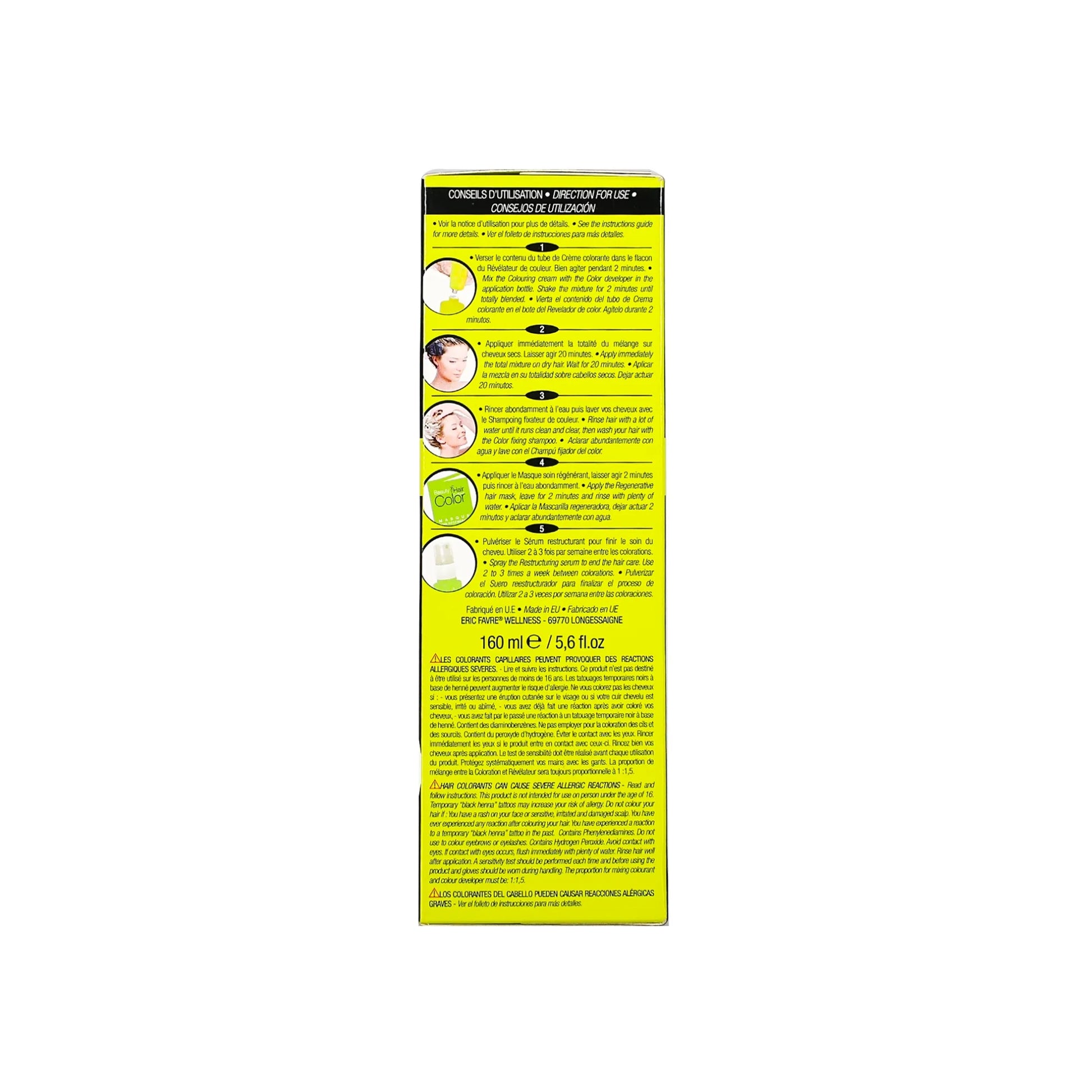 ¥ It is recommended that you do a preliminary test to detect any special allergies, as Eric Favre Beauty Hair Color can cause serious skin infections.