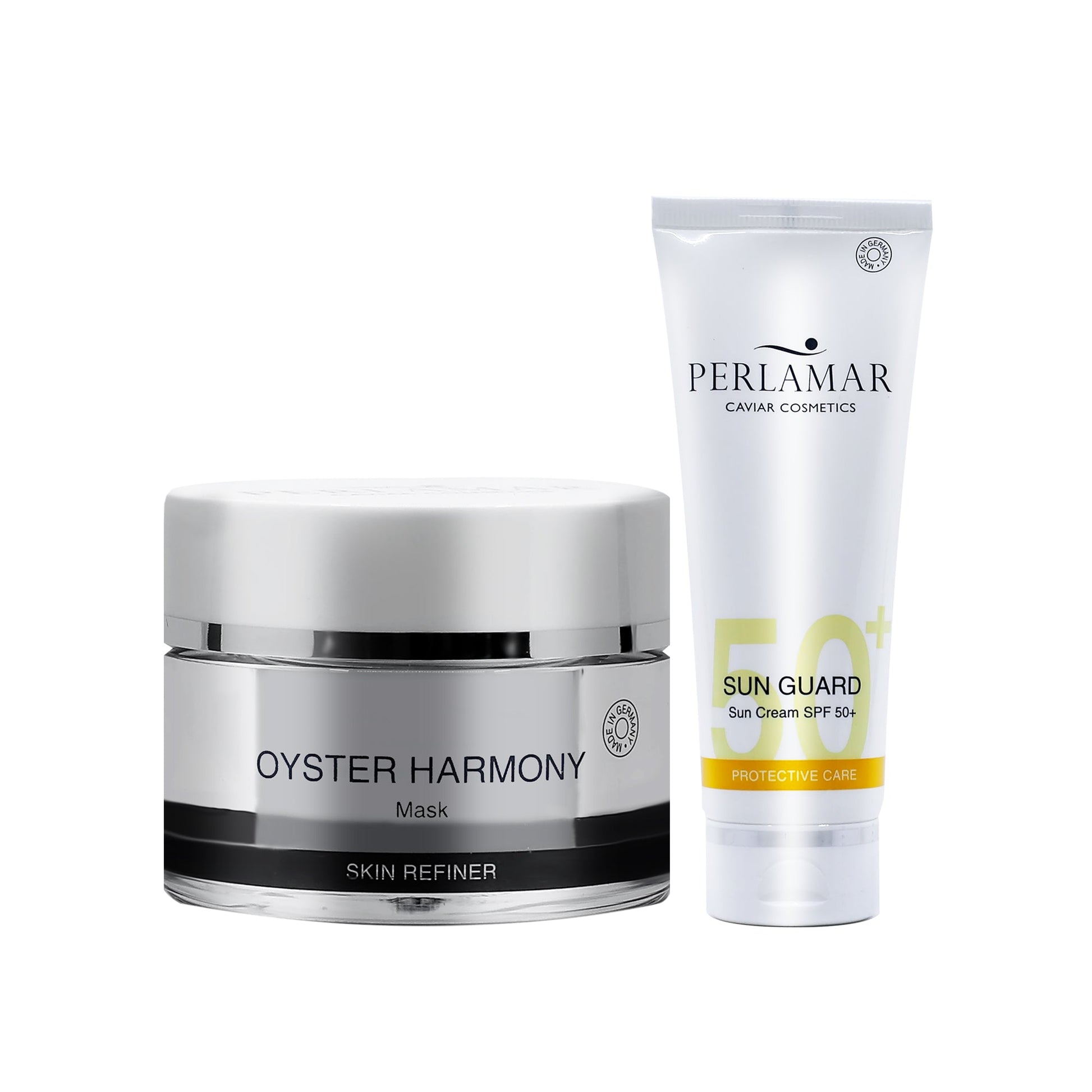 Together, the Sun Guard Sun Cream SPF 50+ and the Oyster Harmony Mask work in unity to revitalize and boost your skin's inherent luminescence, imparting a youthful, vibrant glow.